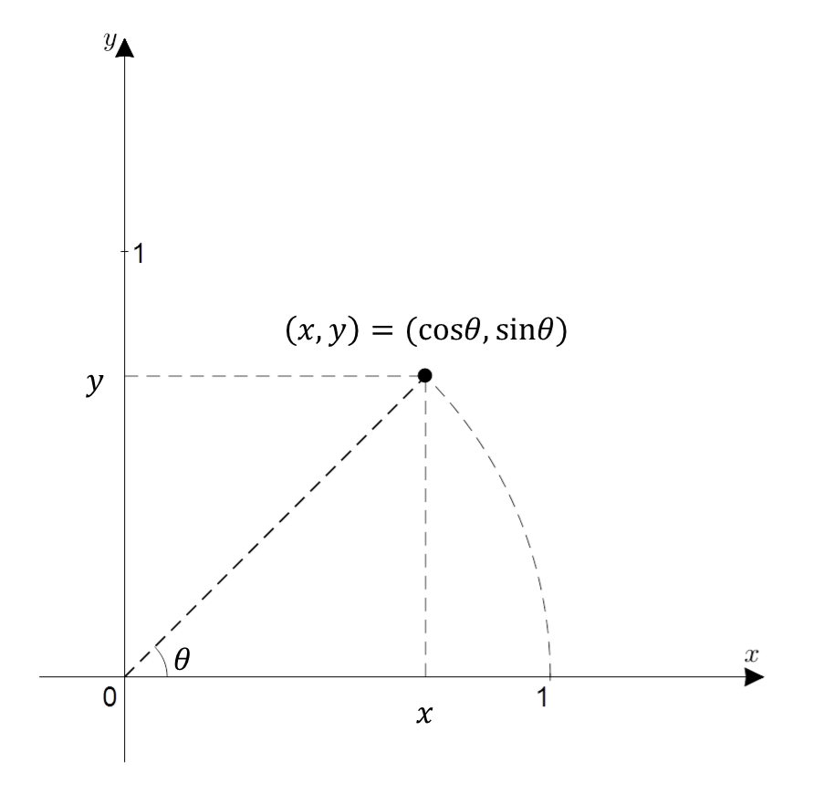 means a point on an arc with a radius of 1 and an angle of radian(θ).