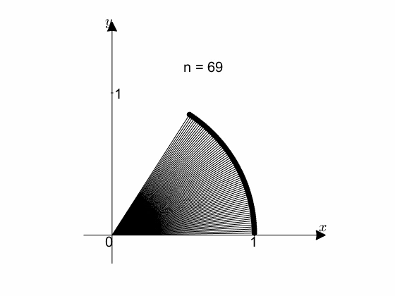 - As n increases, the length of the hypotenuse of a right-angled triangle approaches 1.