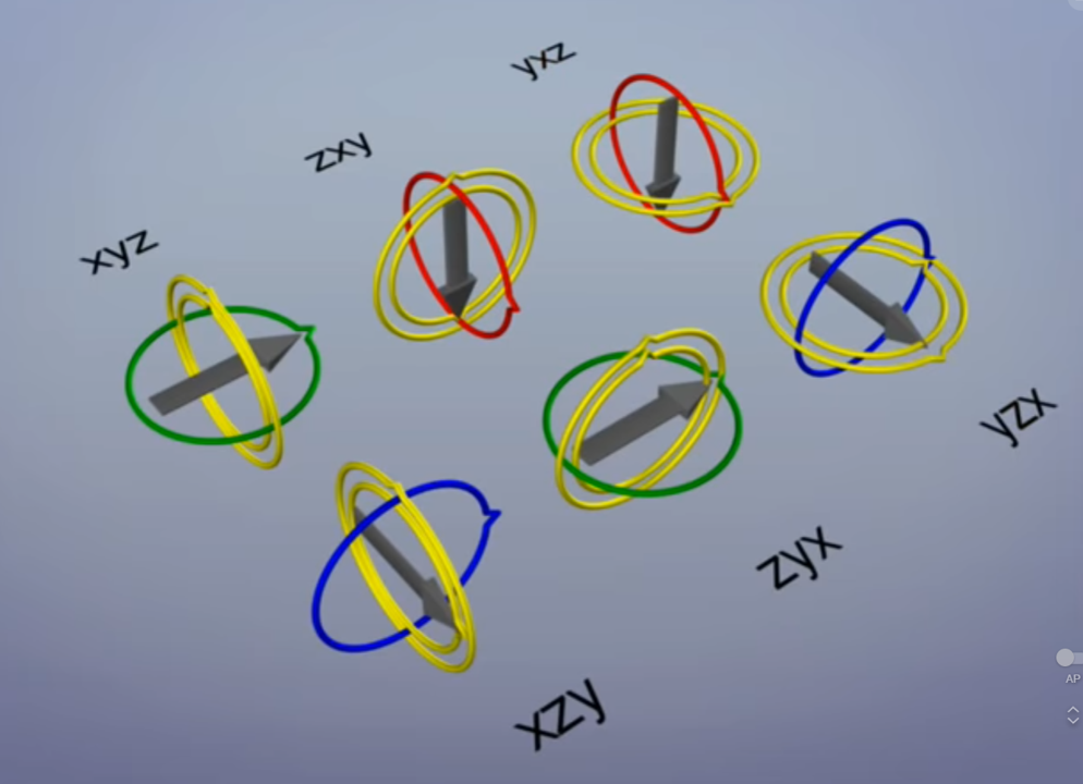 the outermost(magenta) can transform the two inner(blue, green) rotation axes.