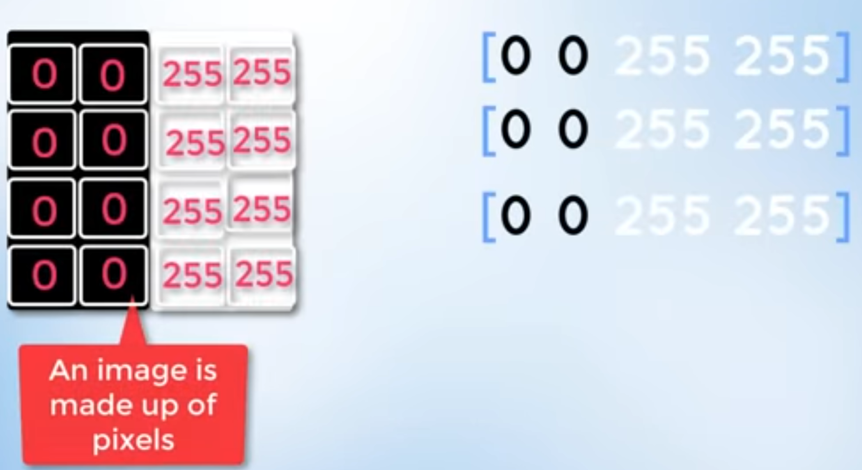 Image can be read as a matrix an array of pixels that contains the light intensity at some location.