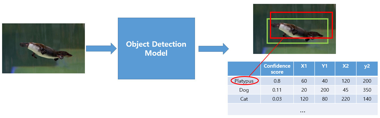 In addition, Object Detection returns the coordinate of the Bounding Box and Confidence Score.