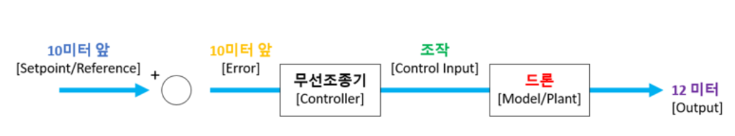 - A closed loop system : The reason why it calls a closed loop system is the flow in the diagram is a form in whichloops are connected(closed) to each otheras below. The output(12 meters) is going back to the beginning, and it affects to next Control Input.