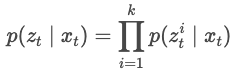A Posterior Probability that the control input () will change the previous state () to the current state ().