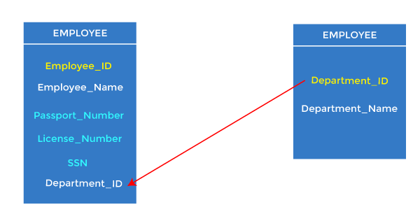 - In the EMPLOYEE table, Department_Id is the foreign key, and both the tables are related.