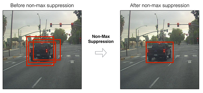 Non-maximum Suppression (NMS) A technique that’s used after the region proposal step to eliminate duplicate bounding boxes and select the most relevant ones. The idea behind NMS is straightforward. It works by comparing the confidence scores of the proposed bounding boxes and eliminating the ones that overlap significantly with a higher-scoring bounding box. https://www.jeremyjordan.me/object-de..